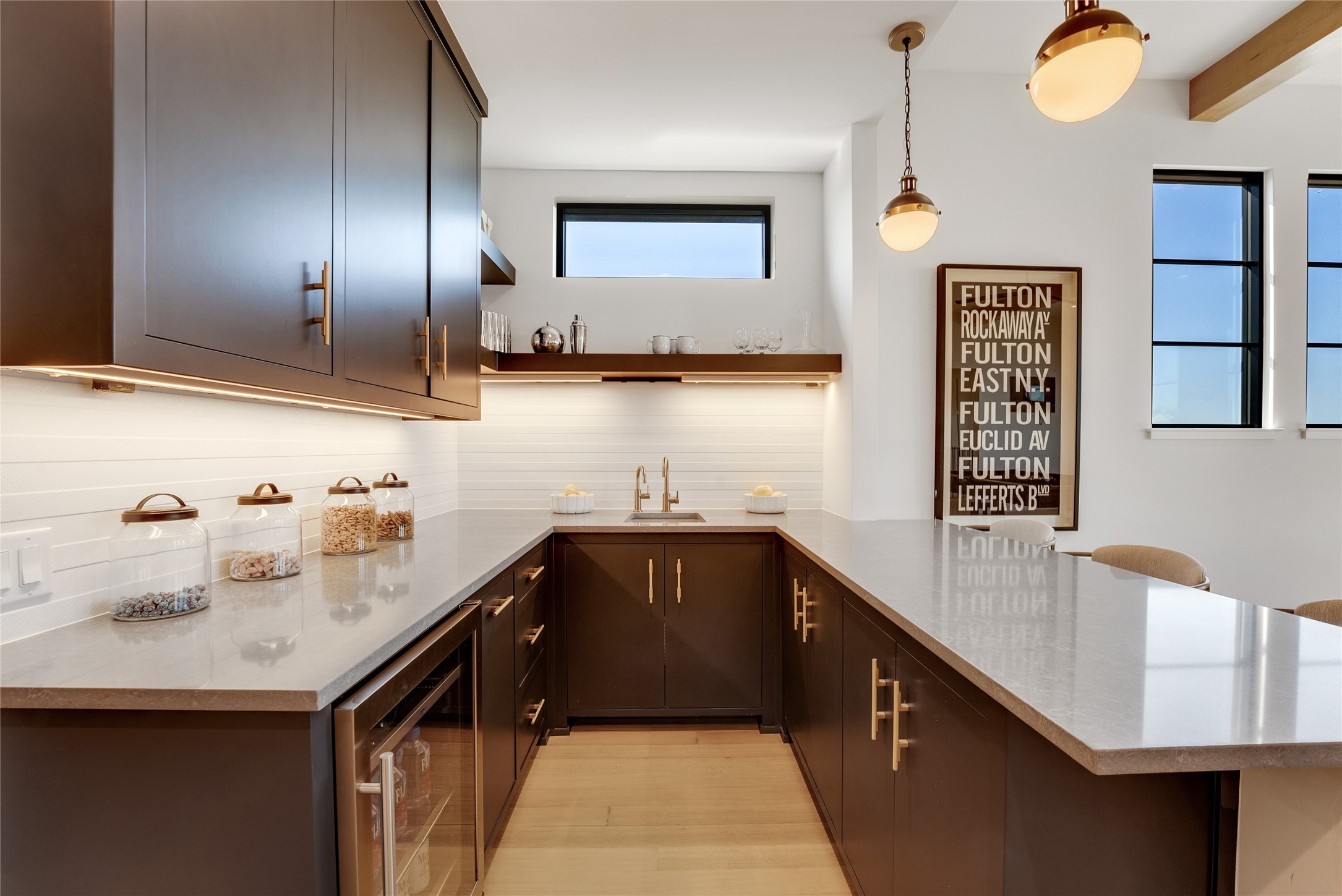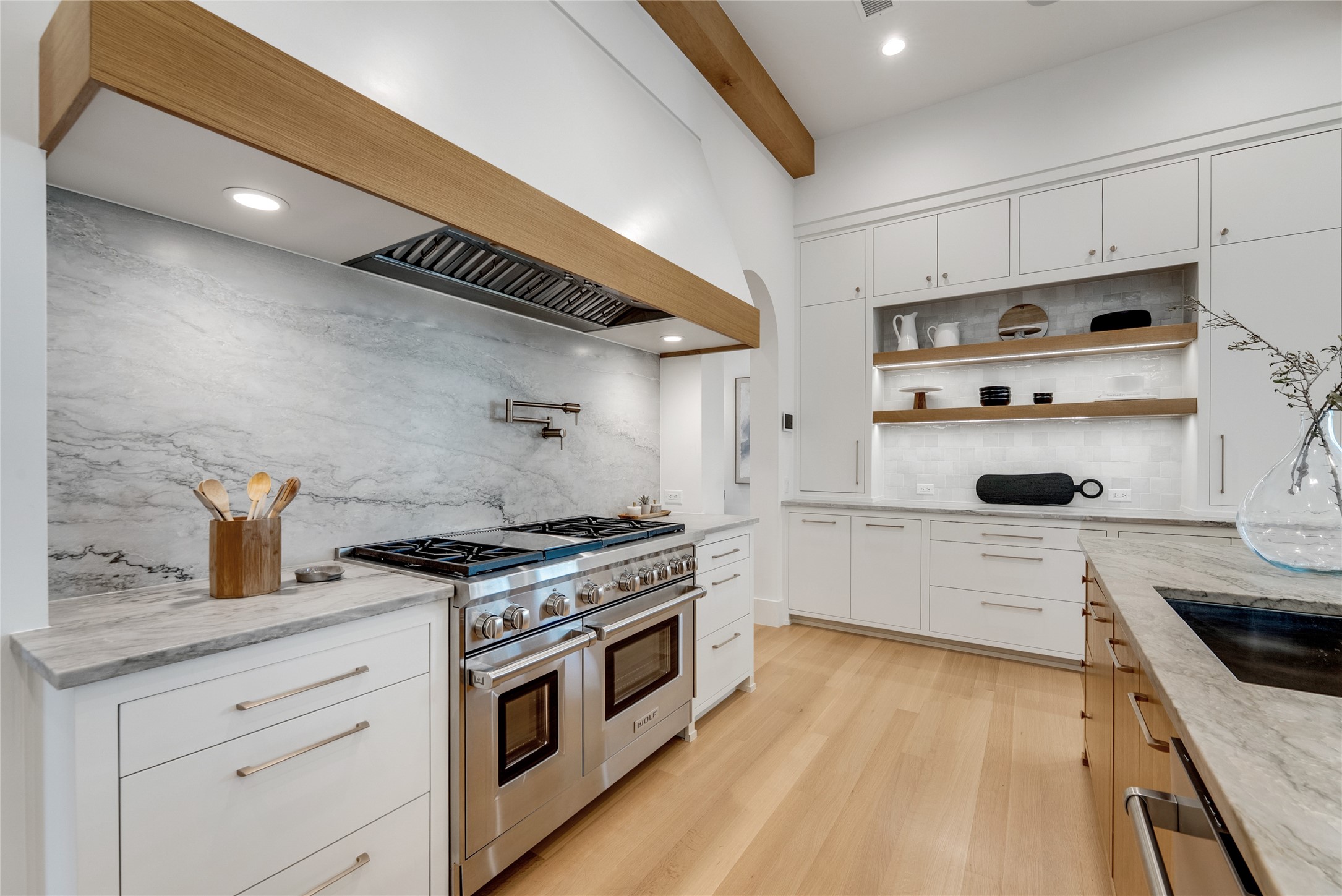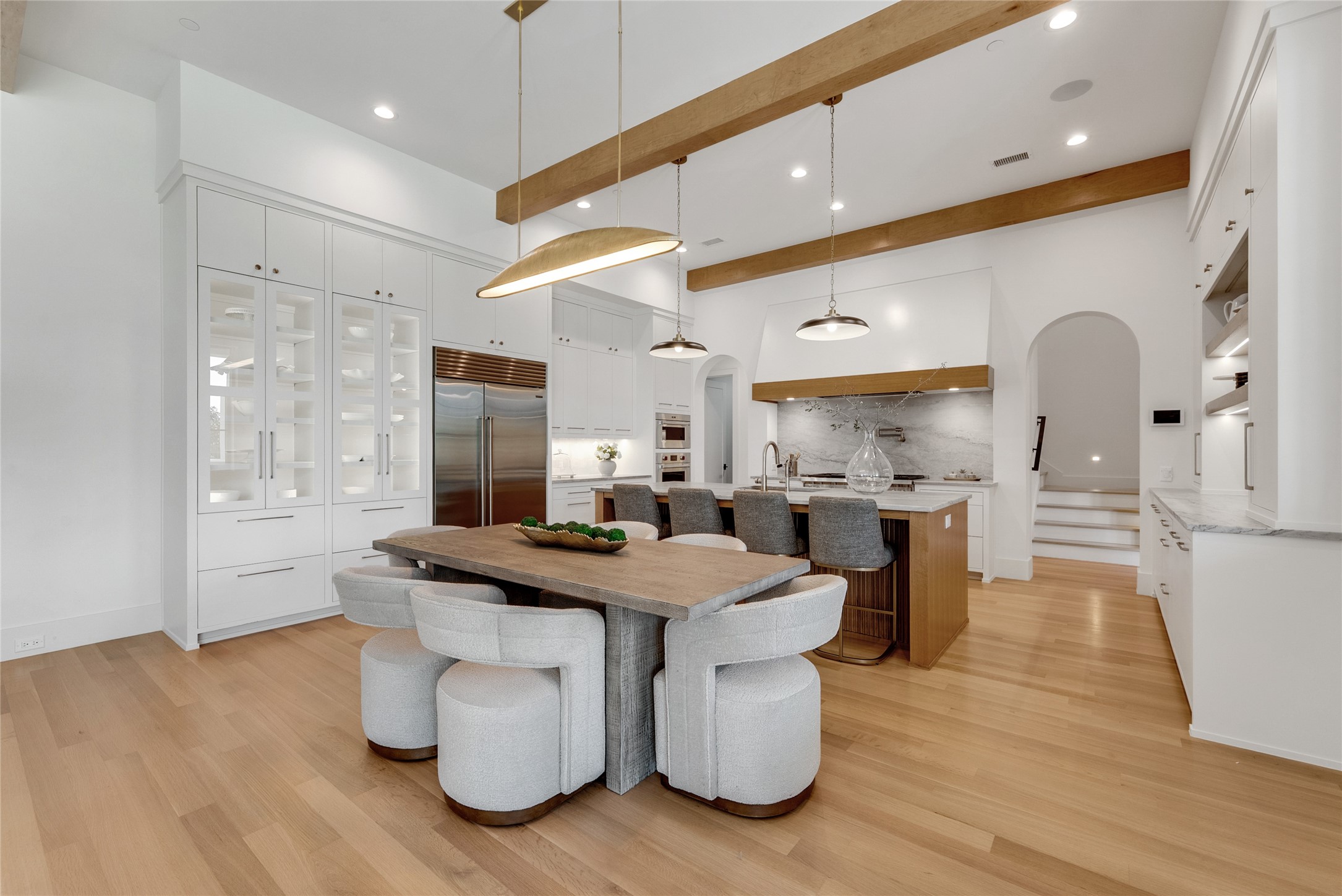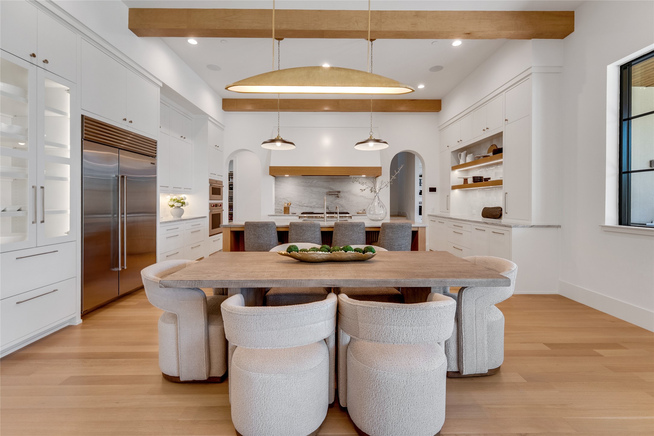 Every inch of this home is custom-crafted with designer finishes and bespoke touches: rift white oak cabinetry and beams, smooth wall finishes, white oak floors, zellige, porcelain and hand painted tiles, with no two rooms alike. The chef's kitchen is a showstopper with quartzite countertops, inset cabinetry, a massive island and venthood, Wolf and Sub-Zero appliances, including a 48" professional range and dual dishwashers, with a prep kitchen perfect for entertaining.