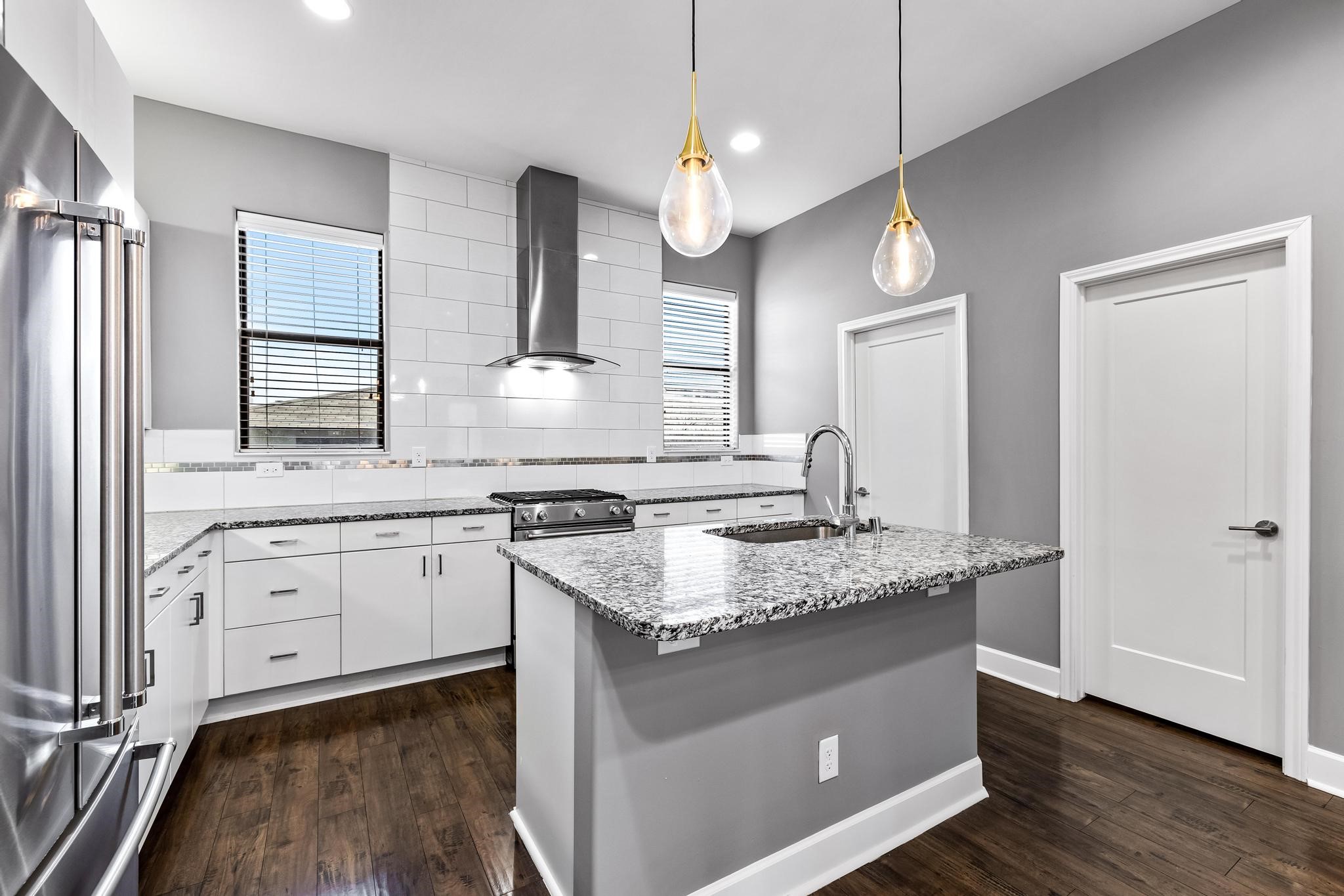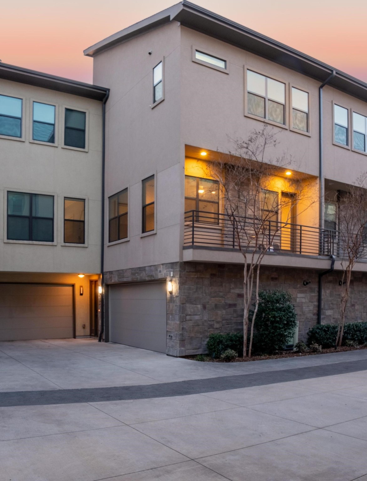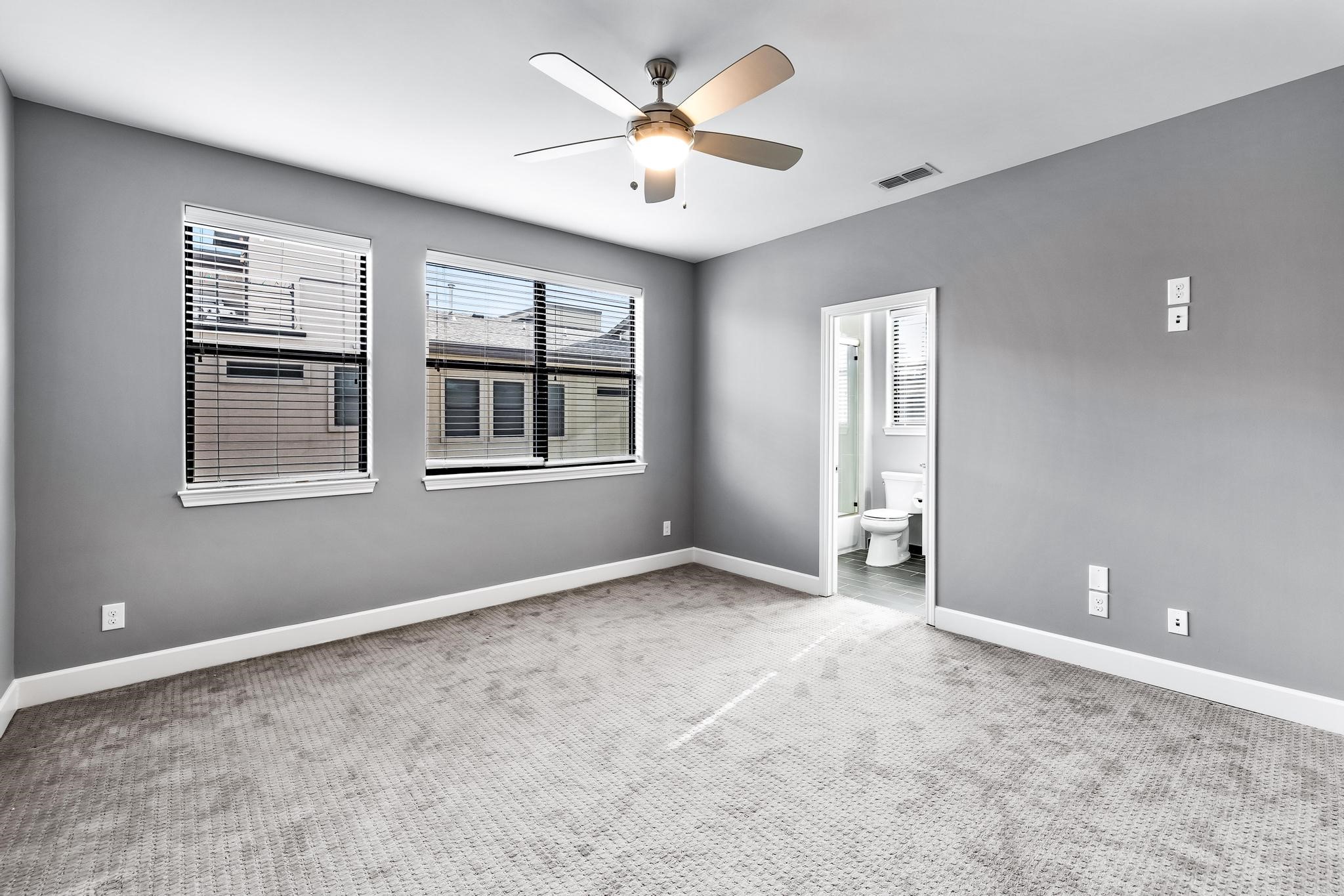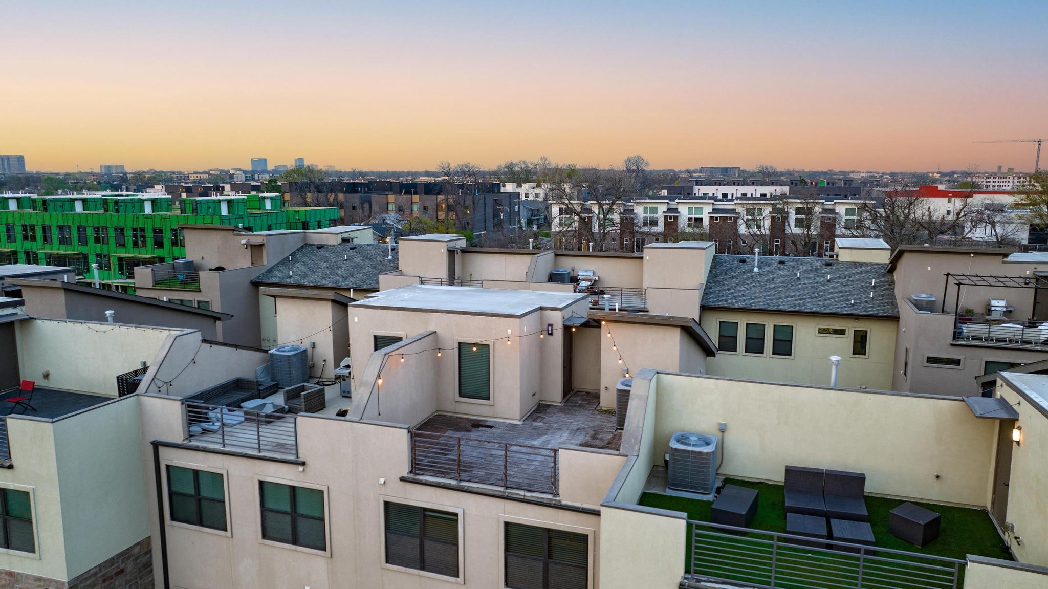 Sophisticated townhome with 3 BR, 3.5 bath in a burgeoning section of E Dallas, moments from vibrant downtown, Uptown, Knox, Bishop Arts, University Park. So much new development surrounds this lovely property! Guest BR with ensuite bath and private patio is on 1st floor. Spacious open-concept living and kitchen is on the 2nd floor with a guest bath and balcony. 3rd floor boasts a large primary and 1 secondary BR both with ensuite baths and ample closet space. Light and bright throughout with all designer finishes, Bosch appliances, quartz counters and custom cabinets. Huge rooftop deck with exquisite unobstructed views of downtown. Gated Community offers private dog-park.