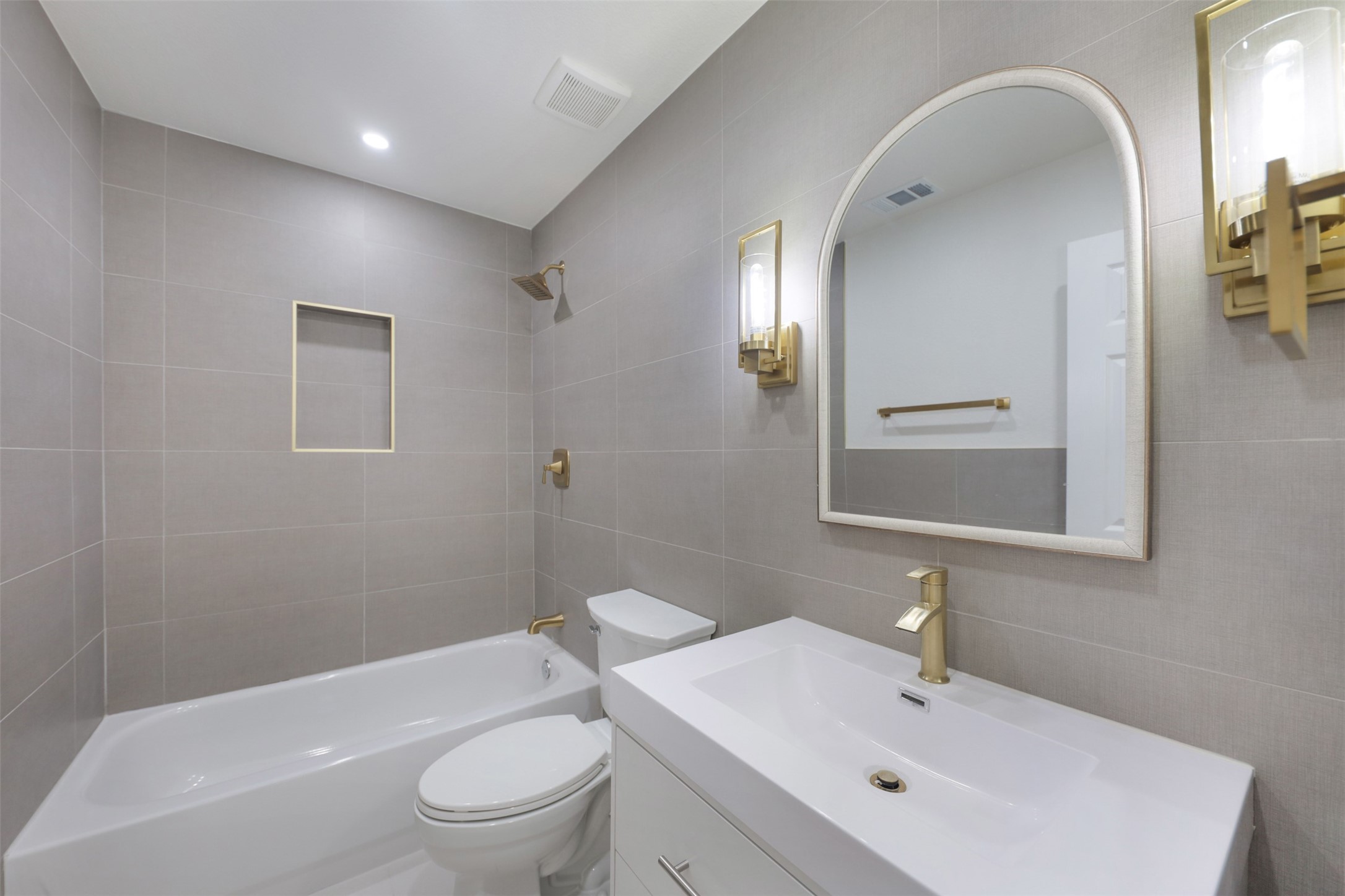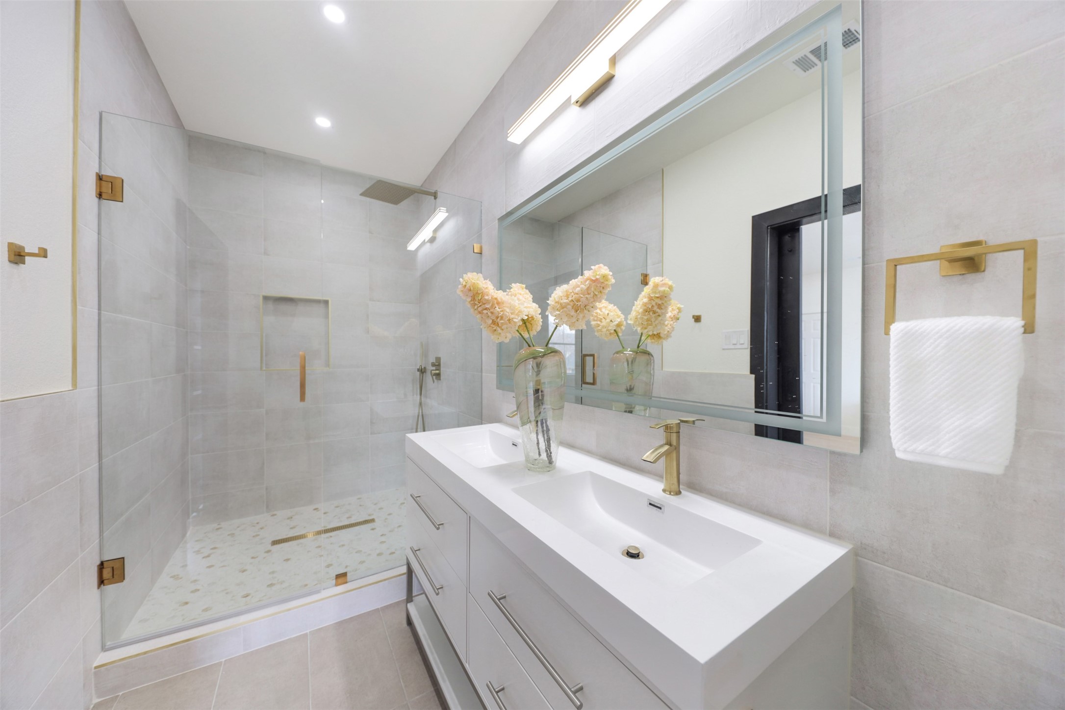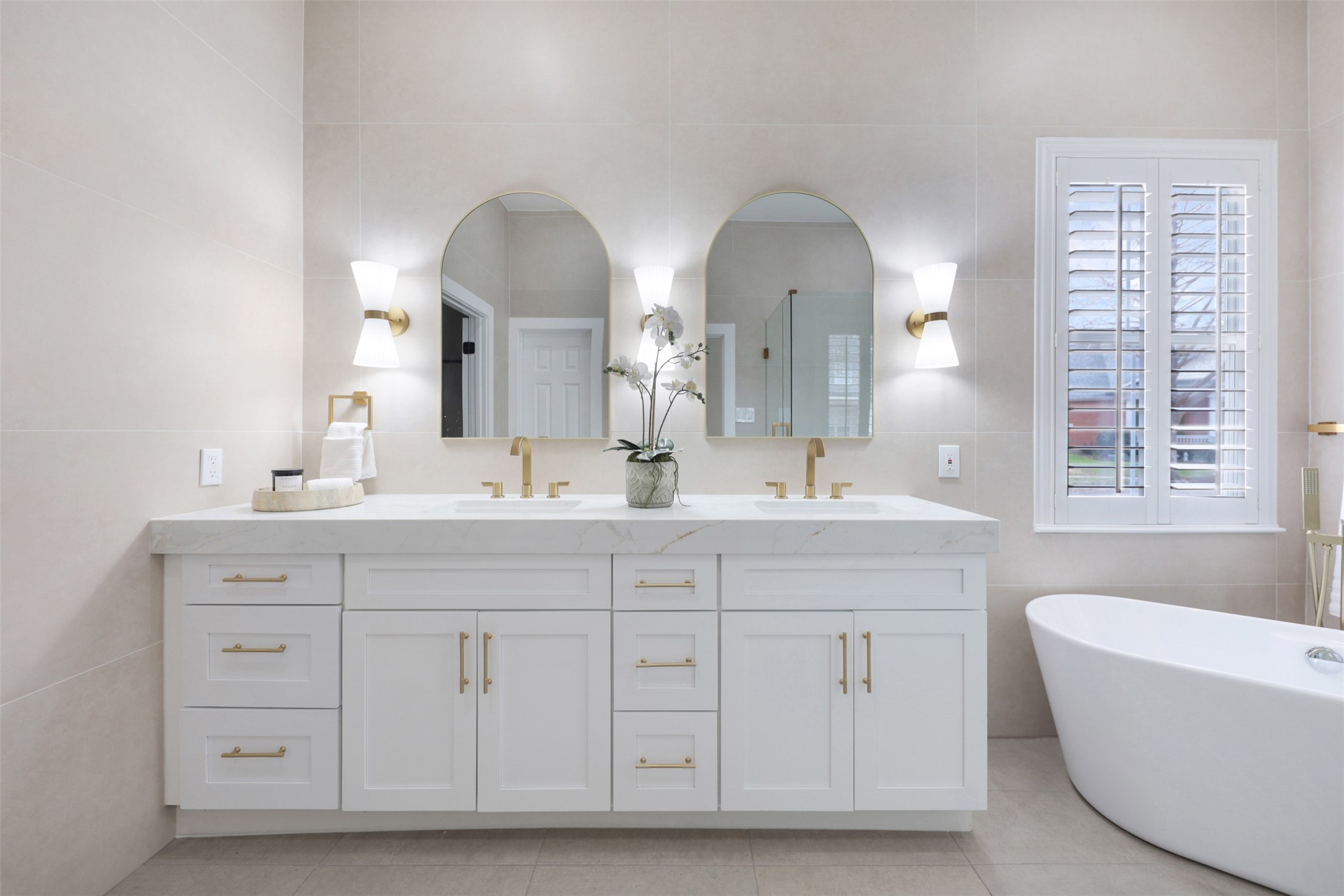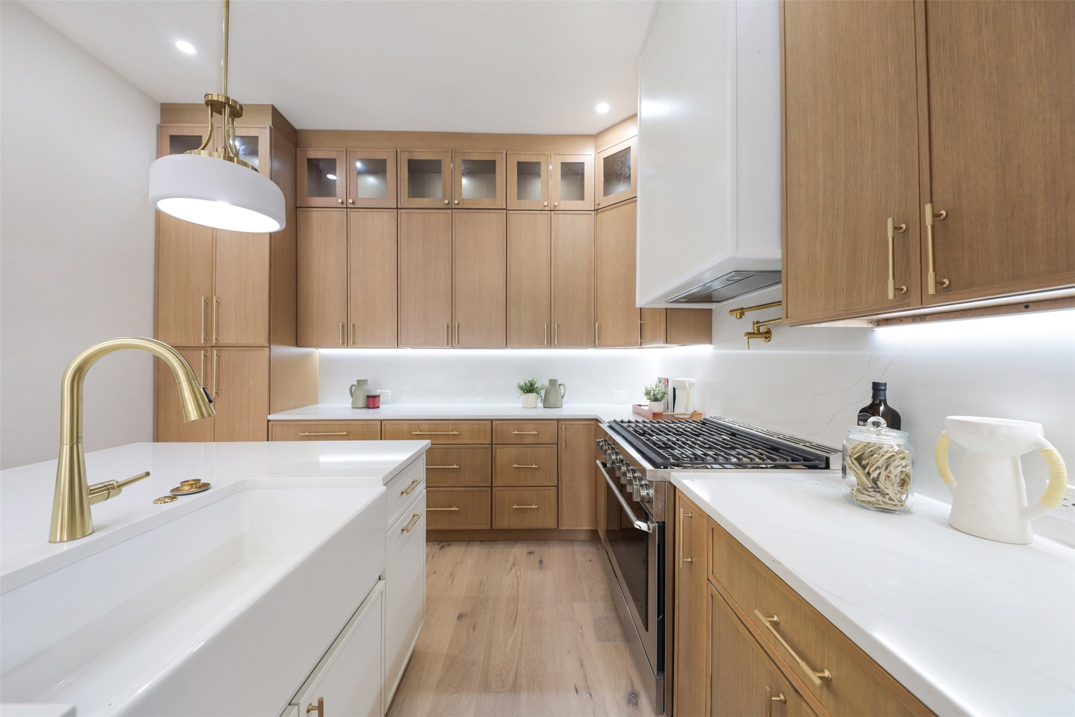 The home features a rare double primary suite layout, including a spacious primary suite on the first floor, offering flexibility for multi-generational living or ultimate guest comfort. The fully updated kitchen showcases new cabinetry, quartz countertops, and designer tile selections, creating the perfect space for both everyday living and entertaining.