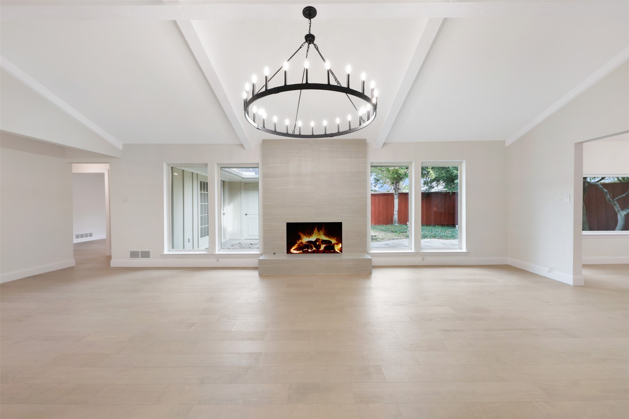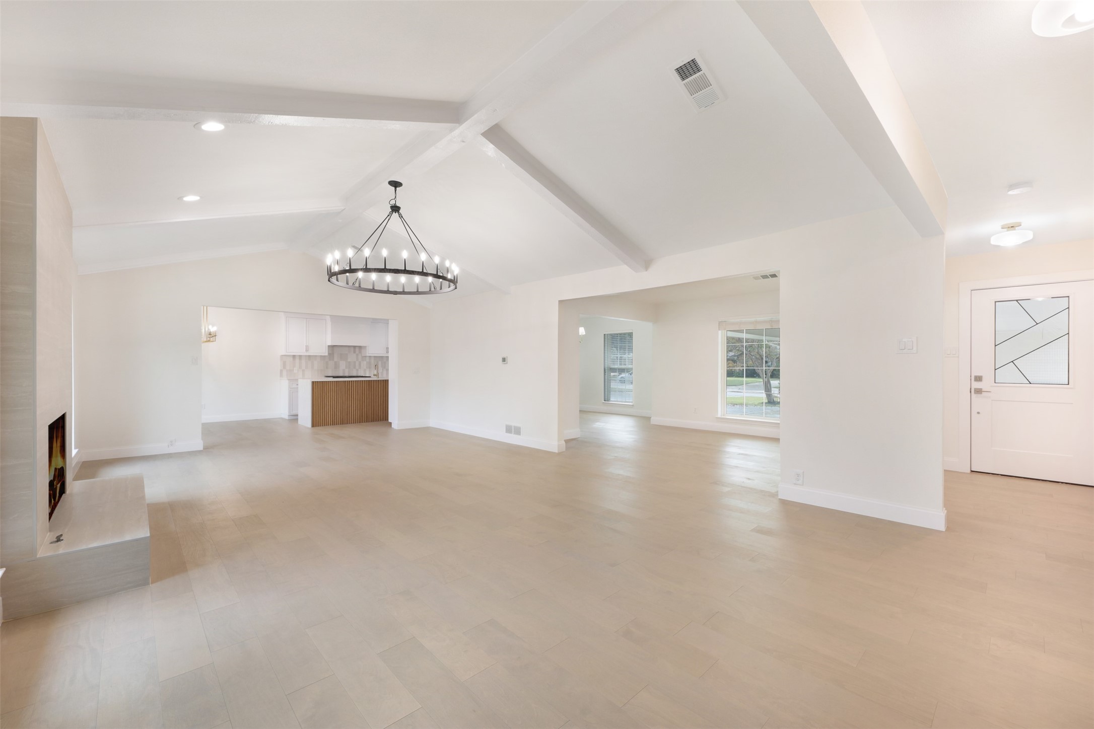 Welcome to this stylish 4-bedroom, 3-bath, single-story home that's been thoughtfully updated with fresh, designer touches throughout. The kitchen is a true standout, featuring quartz countertops, a gorgeous waterfall island, modern backsplash, and stainless steel appliances. It opens right up to the breakfast area and main living room, making everyday living and entertaining easy. The living room offers vaulted ceilings and a cozy fireplace, and there's also a second living area that works great as a game room, media room, or home office.