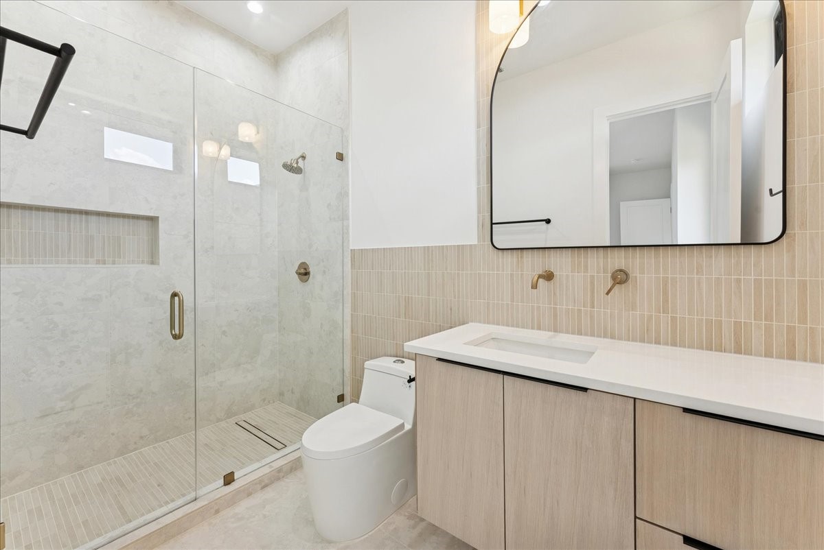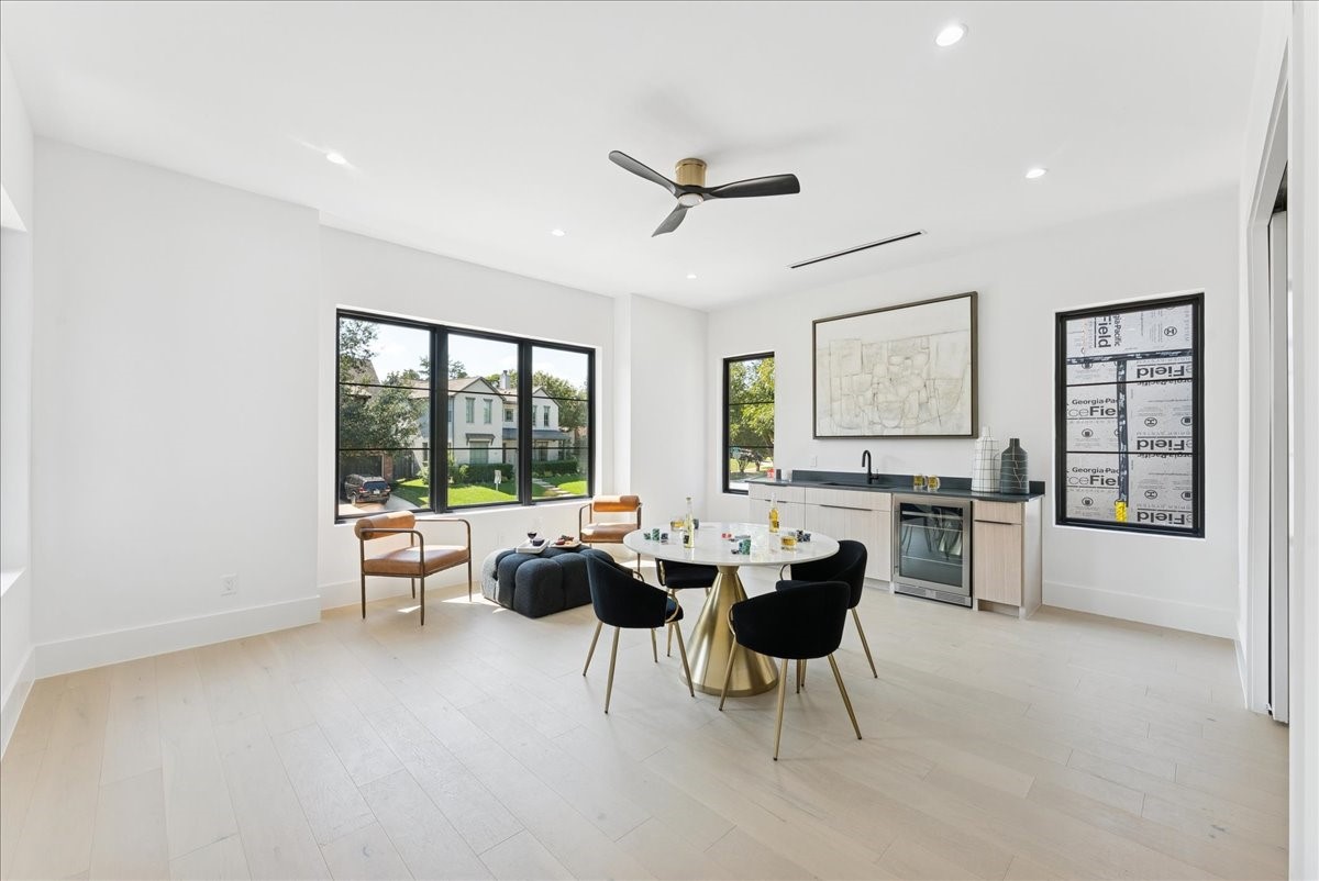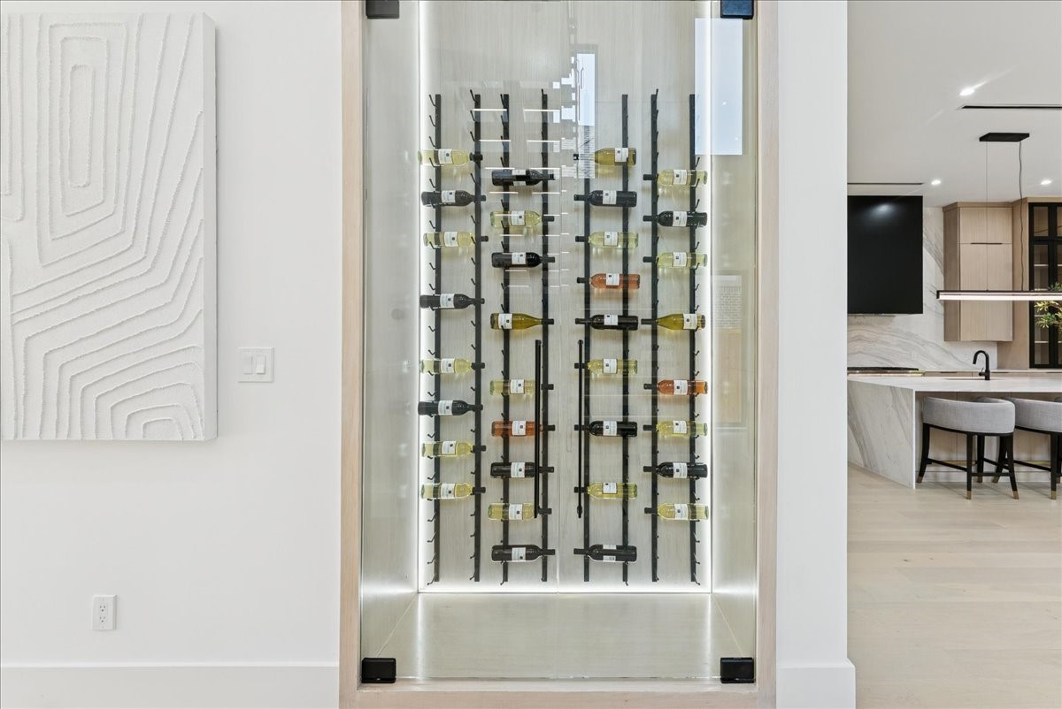 There's a moment when you step inside -- 22-foot ceilings and walls of glass frame a California ease unexpected in Lakewood. This is architecture as experience, where the tactile warmth of Venetian plaster and the precision of bespoke stonework create a sense of grounded, quiet permanence. The entry commands attention: a sculptural fireplace anchors the double-height space, while a floating glass staircase with motion-activated LED lights draws the eye upward. It's drama without pretense. In the kitchen, a 12-foot waterfall island and Thermador appliances meet rift- cut oak cabinetry. A hidden, Bosch-equipped back kitchen keeps the main stage clear for entertaining. The floor plan is an exercise in social choreography: a glass wine display serves as a central focal point, while the wet bar is perfectly positioned to carry guests between the media and game rooms. The downstairs primary suite with a spa-inspired bath offers a serene departure from the gathering spaces, while a separate, moody guest suite ensures privacy. Upstairs, three additional en-suite bedrooms join a media room and a flexible space for a gym or studio. The experience culminates in the sunken, multi-level backyard. Glass walls slide away, blending light-filled interiors with an effortless outdoor flow. This creates a natural footprint for a custom pool to complete the sun-drenched retreat. A rare lifestyle offering, situated minutes from Lower Greenville's vibrant culinary scene, the scenic trails of White Rock Lake, and high-end shopping & dining in the heart of Dallas. This isn't just new construction; it's a fully realized vision -- bold, refined, and uncompromising.